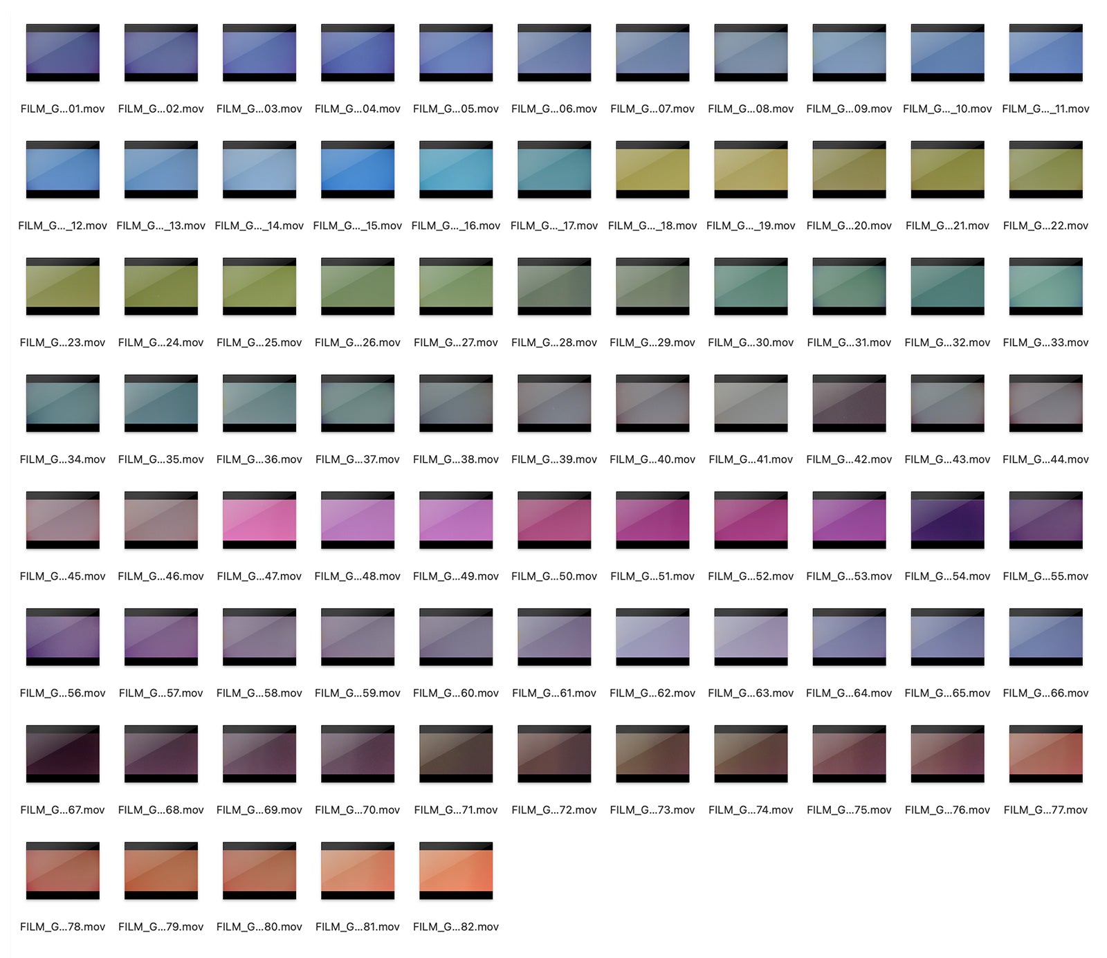 We created these amazing film grain overlays by shooting with super 8 cameras on black, white and coloured cardboard papers. This experiment involved using different types of Kodak film stock (50D, 250D and 500T) under various light conditions. The result is a wide range of tints, coarsenesses and texture subtleties. Once the filming was completed, the super 8 cartridges were sent to a professional lab for processing and then the film footage was digitized on a high res telecine scanner. The result of all this hard labour is now at your doorstep.